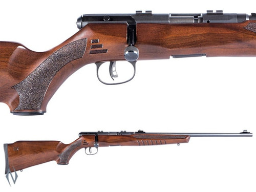 >>Introducing the latest rimfire marvel from Savage: marrying precision with elegance, this new rimfire boasts a striking laminate wood stock. Crafted for enthusiasts who demand both performance and aesthetics, it's a testament to timeless style and superior engineering. Experience the perfect blend of form and function with our newest addition. >>FEATURES <>Ambidextrous Wood Thumbhole Stock, Grey with Black Spiderweb <>Thread-in head-spacing <>Threaded with cap for 1/2-28 <>2.5-6 lb User-adjustable AccuTriggerâ„¢ <>10-round rotary magazine <>2 Sling Studs <>2 Piece Weaver Bases >>SPECIFICATIONS <>Action: Bolt <>Barrel Colour: Black Carbon Fibre <>Barrel Finish: Matte <>Barrel Length: 18" <>Barrel Material: Carbon Fibre Wrapped Stainless <>Muzzle Thread Pitch: 1/2x28 <>Calibre: 22 LR <>Magazine Capacity: 10 <>Length of Pull: 13.5" <>Magazine: Rotary <>Overall Length: 36" <>Rate of Twist: 1" in 16" <>Receiver Finish: Matte Blued <>Receiver Material: Carbon Steel <>Stock Colour: Grey with Black Spider Web <>Stock Finish: Matte <>Stock Material: Wood-Beech <>Weight: 2.40 kg